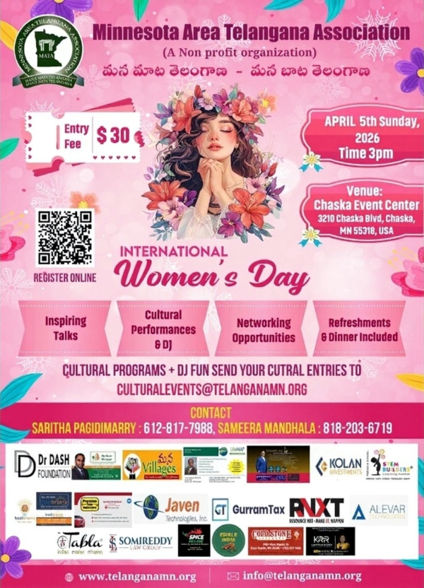 MATA, a non-profit organization committed to fundraising and charitable initiatives across the USA and India, is delighted to invite you to a special celebration in honor of International Women's Day 2026.